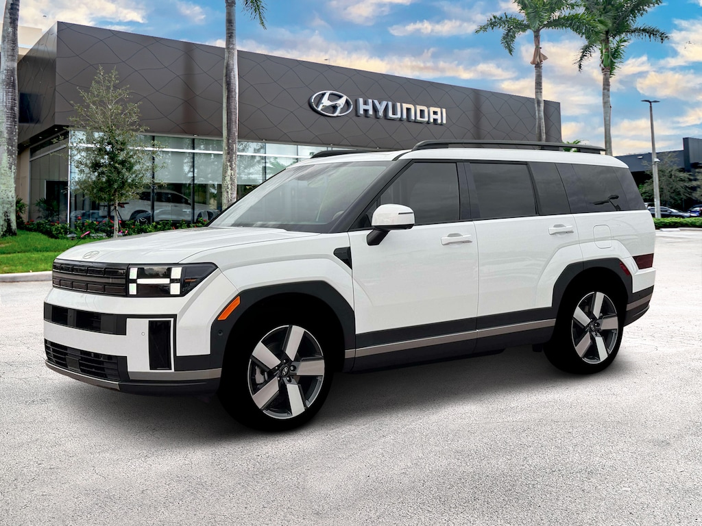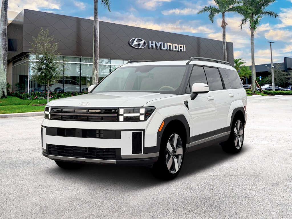 Recent Arrival! Serenity White 2026 Hyundai Santa Fe Hybrid Limited